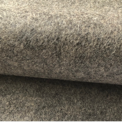 1,1m lang 1,4m breed, 90% wol, 10% nylon, middengrijs, deze coupon heeft een verstevigde rug