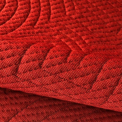 1,7m lang 1,55m breed, deels wollen gebreide meubelstof met veel rek, donkerrood