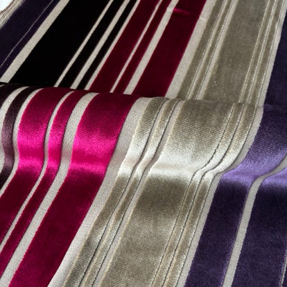 0,65m breed en 6,5m lang, zware luxe stof met velours strepen.