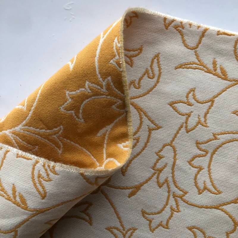 prijs per meter, dikke luxe katoen met geweven oranhegele bloemen 10 meter op voorraad