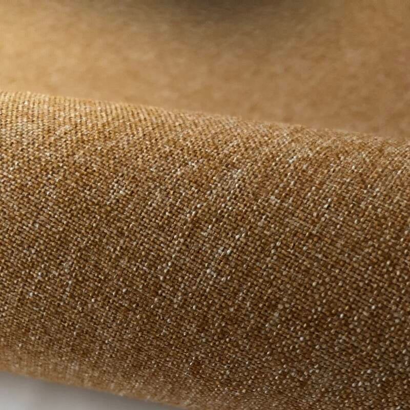 4,2m lang 1,7m breed, 90% wol, 10% nylon, licht warm oranjebruine paneelstof, winkelprijs is 145 euro per meter