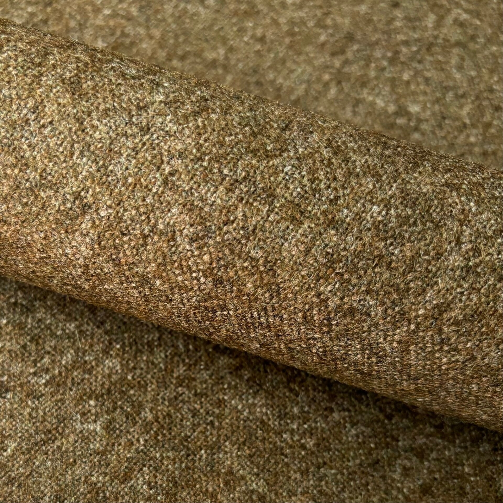 1,25m lang 1,4m breed, 70%wol, 30% viscose, bruin groen creme gemeleerd