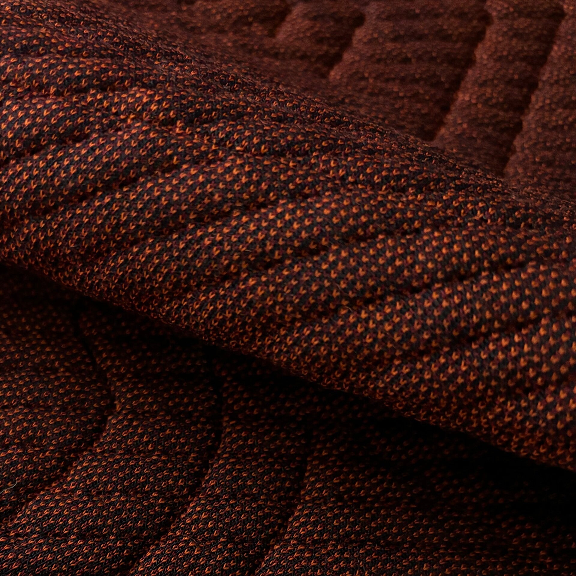 Prijs per meter, 1,55m breed, 21% wol, 11% nylon, 7% polyester, 1% elasthaan, 60% polyester vulling, donkerrood oranje zwart, 2m voorraad