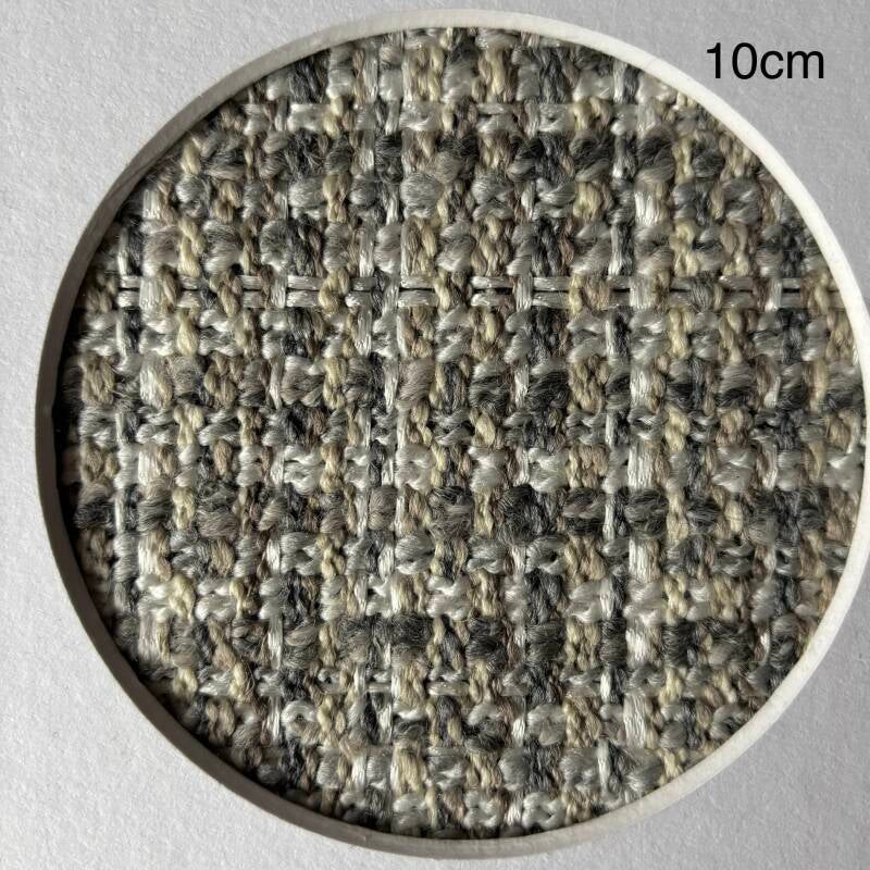 0,6m lang, 1,4m breed met een stuk er aan van 1,33m breed en 0,8m lang, luxe zware soepele grof geweven meubelstof, Dedar?
