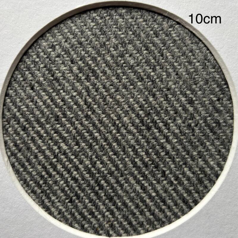 2,8m lang, 1,4m breed, 75% wol, 25% nylon, grijs diagonaal gestreept, winkelprijs is 150 euro per meter.