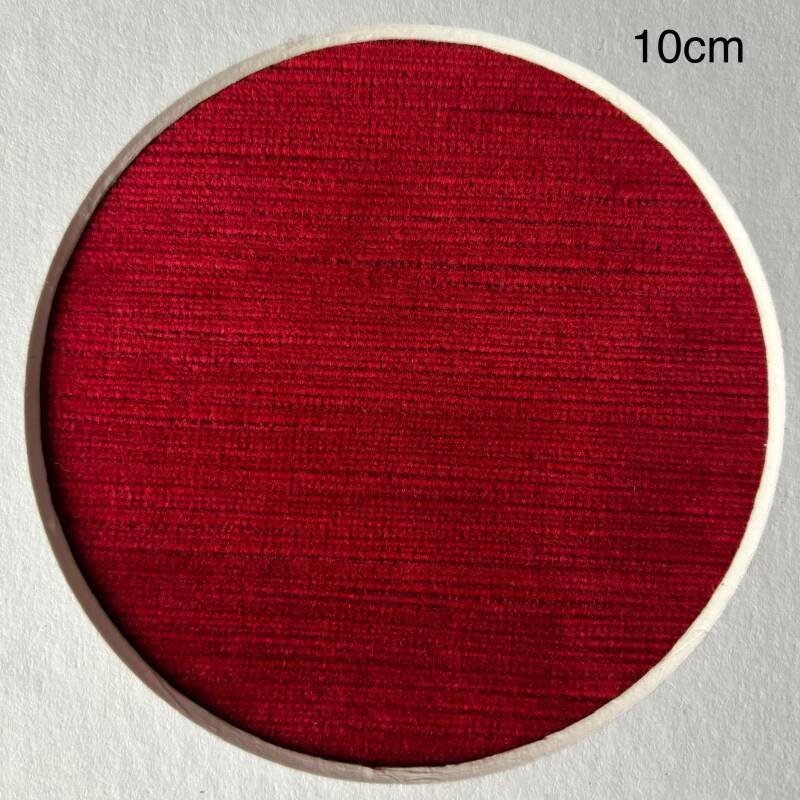 4,7m lang, 1,4m breed, dieprode chenille velours met gestreept oppervlak.