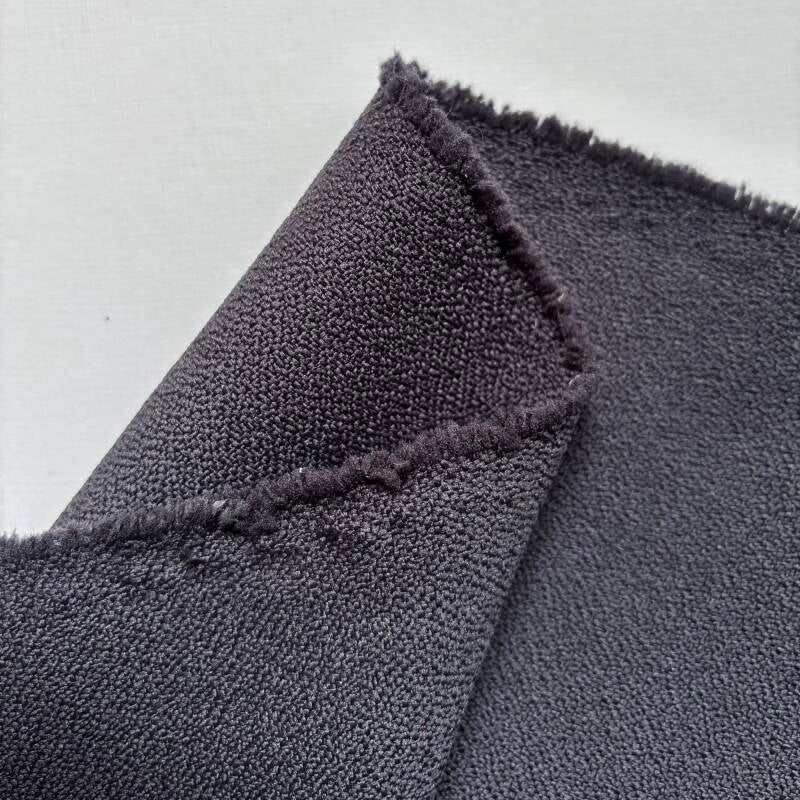 2 coupons: 2,5m lang en 2,2m lang, 1,4m breed, 100% polyester,donker blauwgroen, gaat richting zwart dunne crepe meubelstof