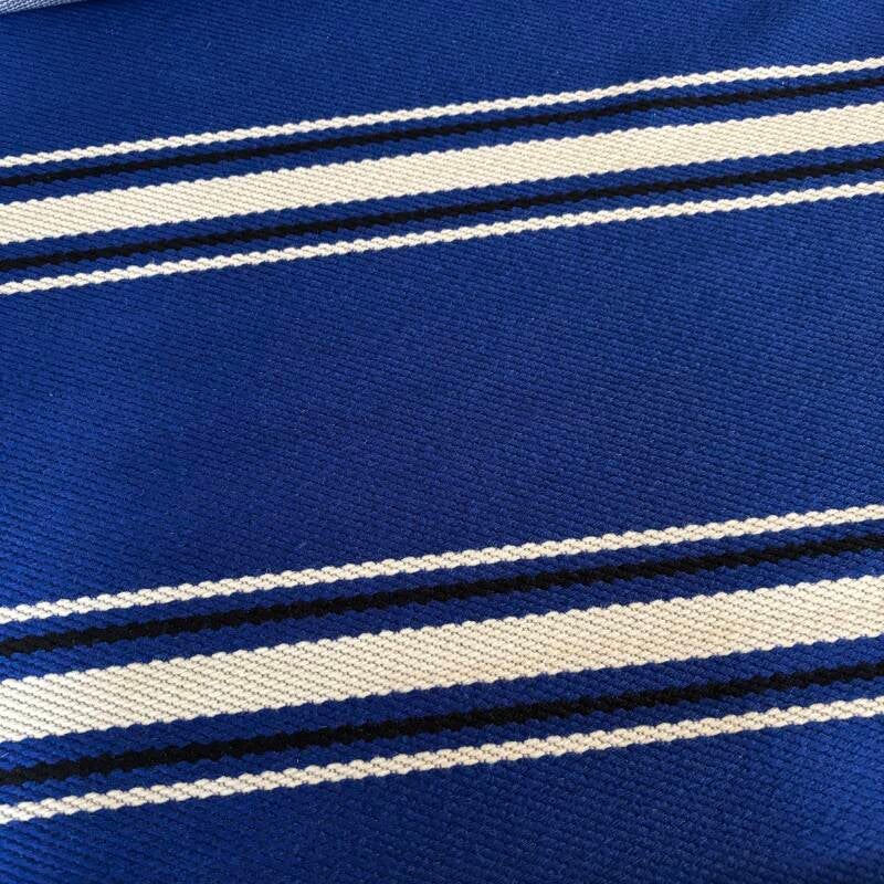 1,68m lang, 1,4m breed, 34% acryl, 28% linnen, 24% katoen, 14% wol, dikke soepele meubelstof van het luxe merk Dedar, winkelprijs is 260 euro per meter