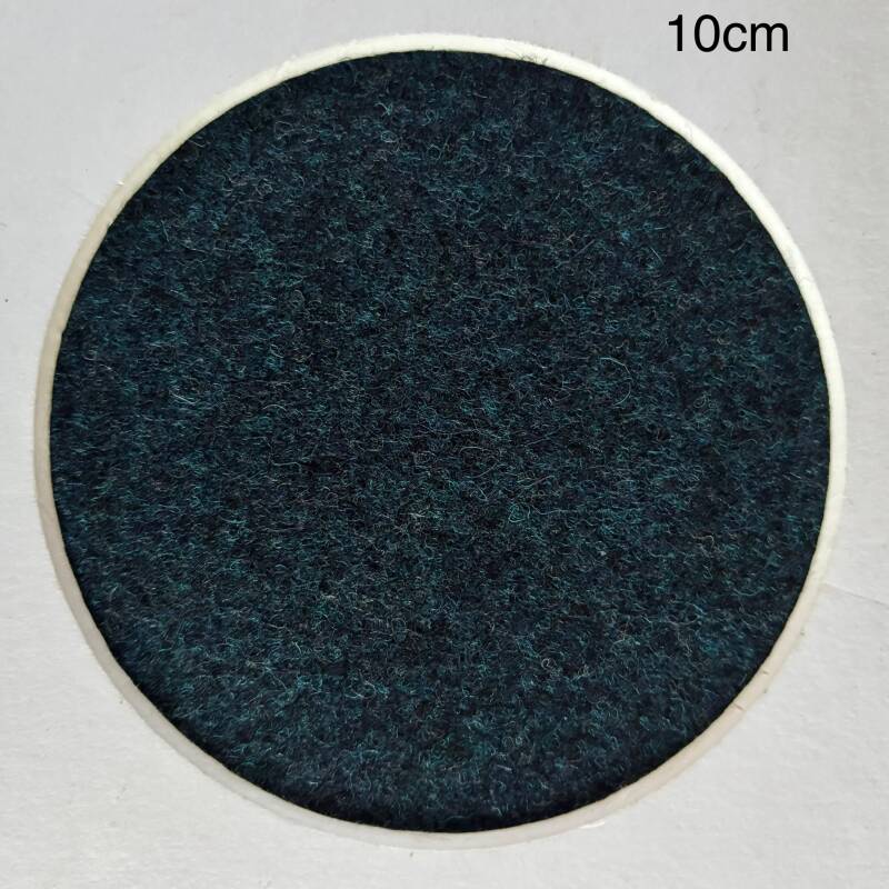 1,35m lang, 1,5m breed met een stuk er aan van 1,18m breed en 0,2m lang, 100% wol blauw gemeleerd