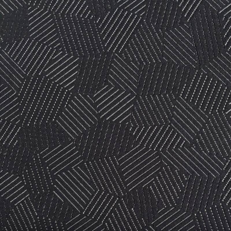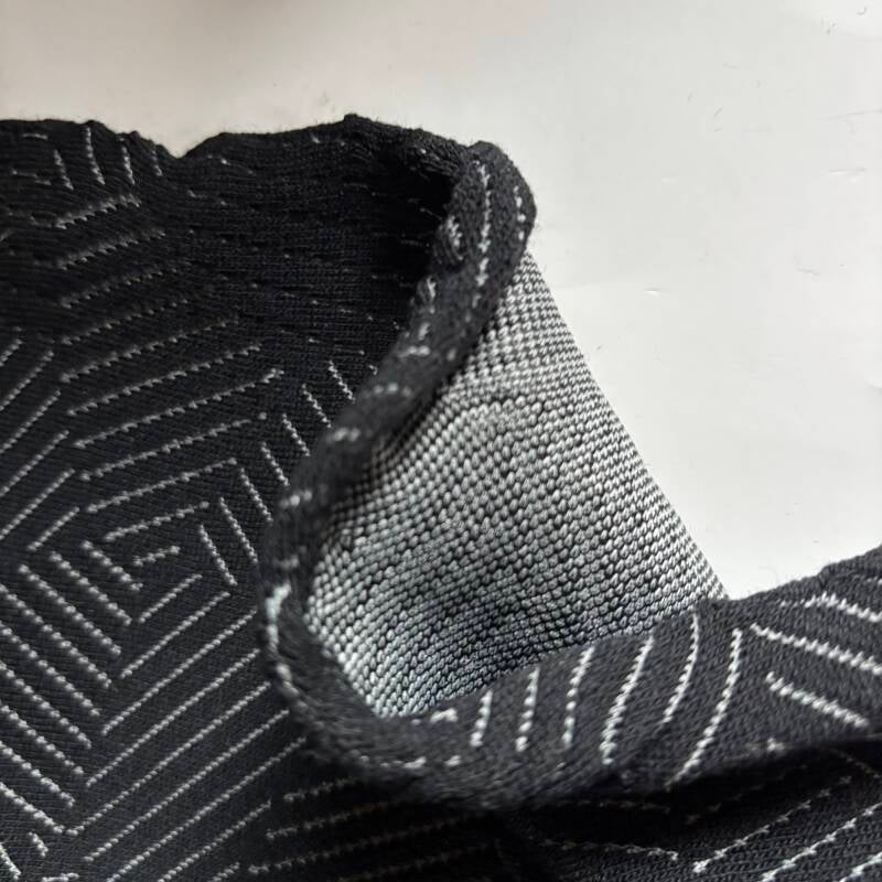 1,9m lang, 1,6m breed, 60% wol, 20% polyester, 20% nylon, veel rek, zwart lichtgrijs