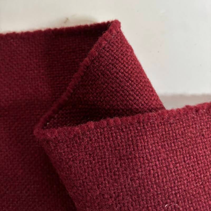 0,49m breed, 0,8m lang, 70% wol, 30% viscose, donkerrood