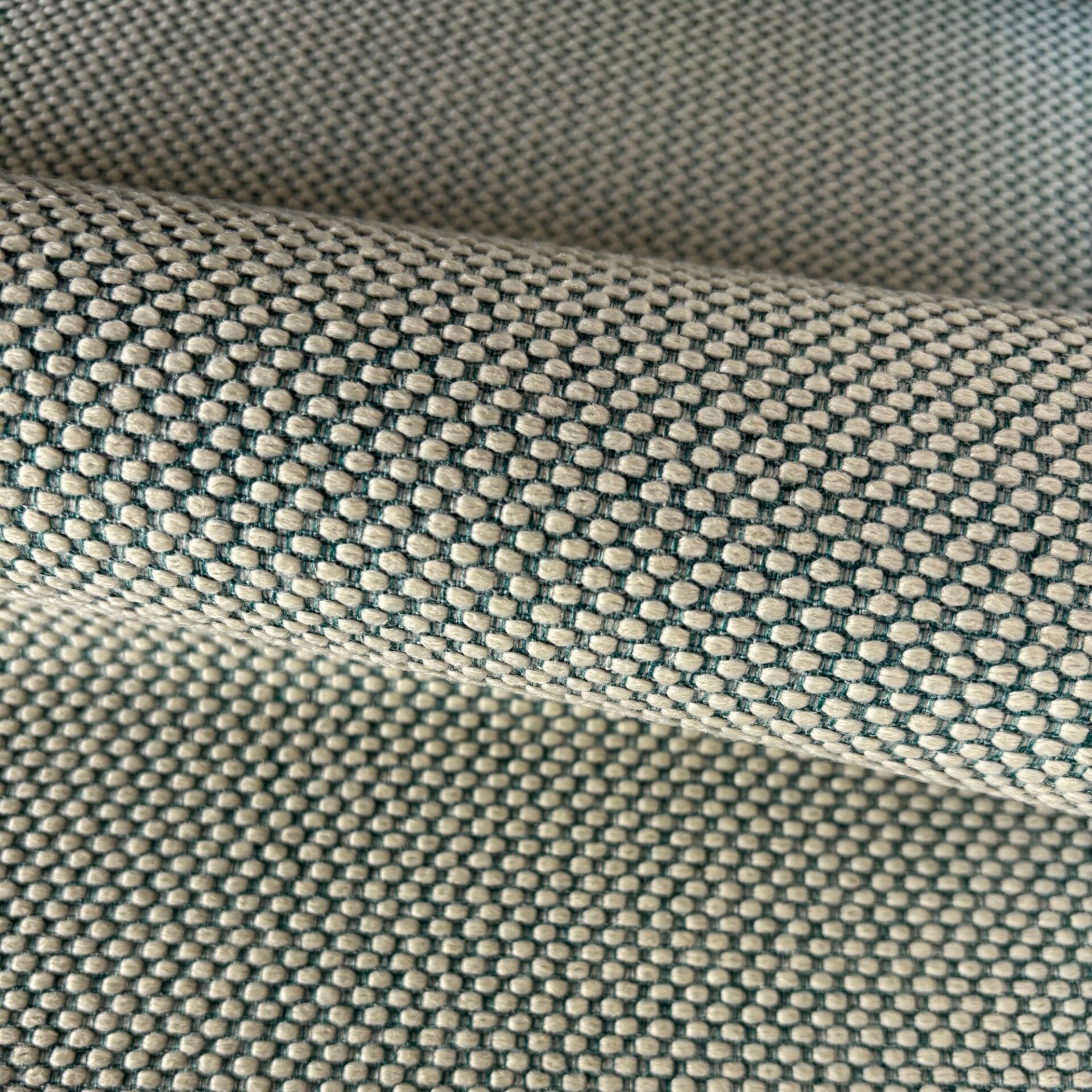 7,2m lang, 1,4m breed, 100% recycled polyester, groenblauw wit