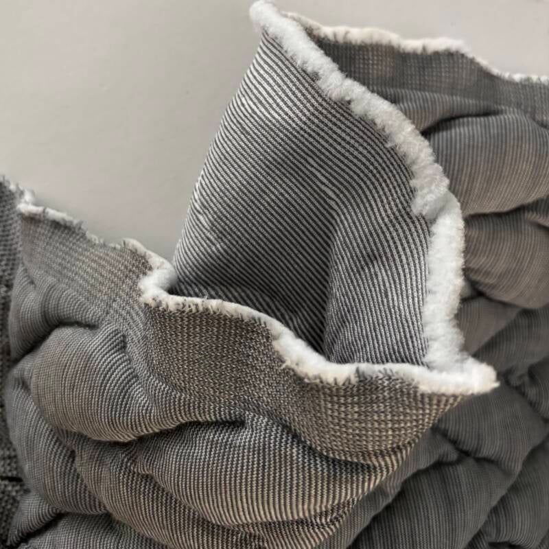 Prijs per meter, 1,85m ! breed, toplaag: 75% wol, vulling polyester, grijs wit, voor oa Moroso, 8m voorraad