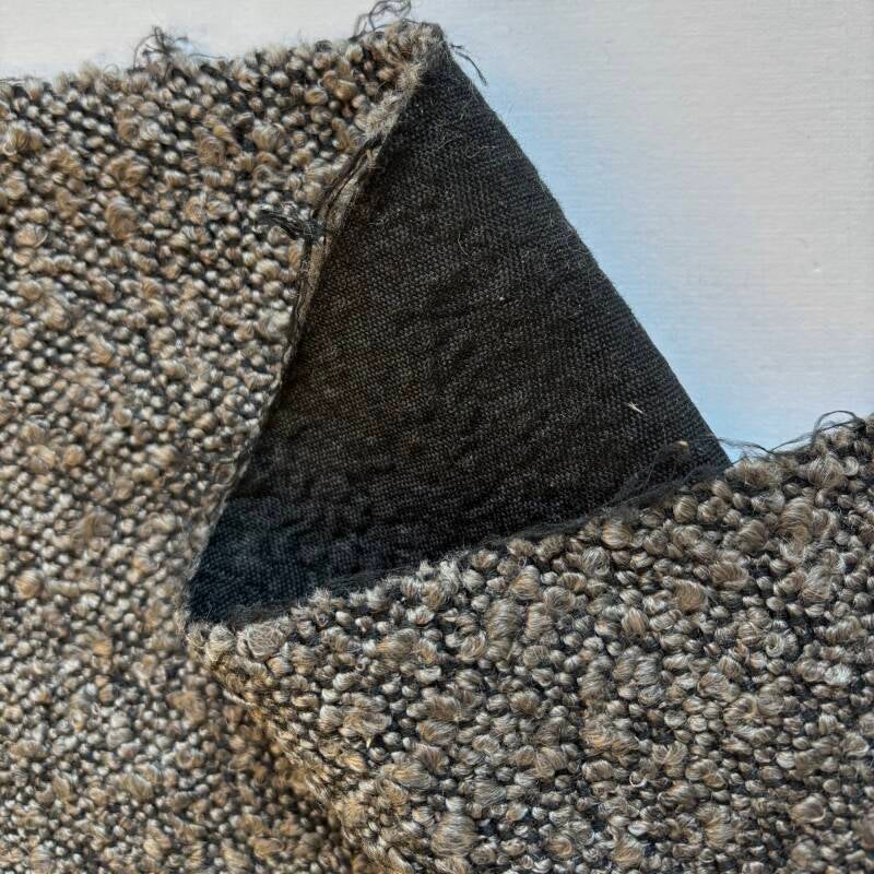 4,2m lang, 1,4m breed, 100% polyester, onrgelematig patroon op iets stevige rug zwart taupe grijs