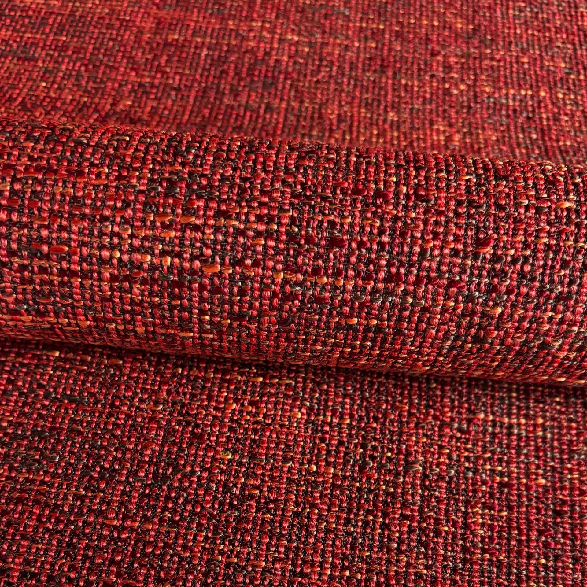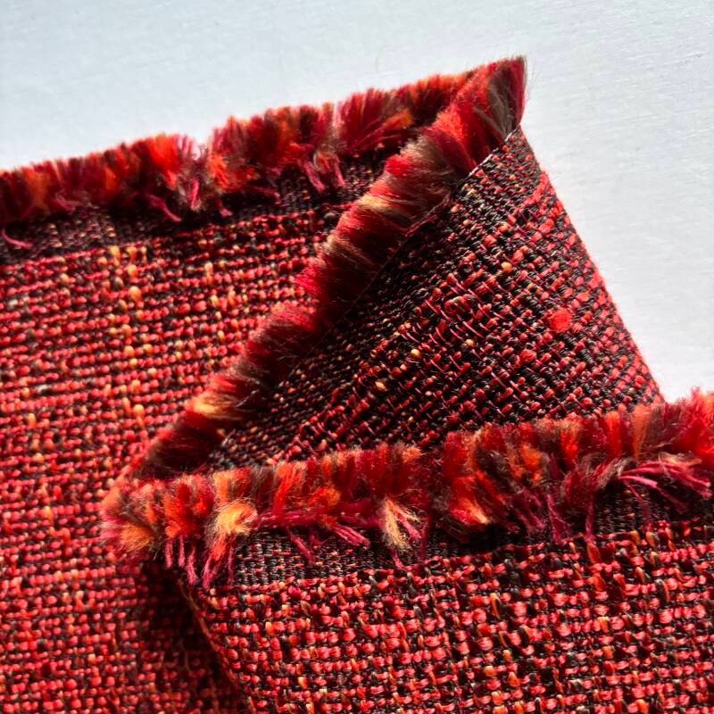 2,1m lang, 1,4m breed, polyester, rood geel bruin gemeleerd, soepel