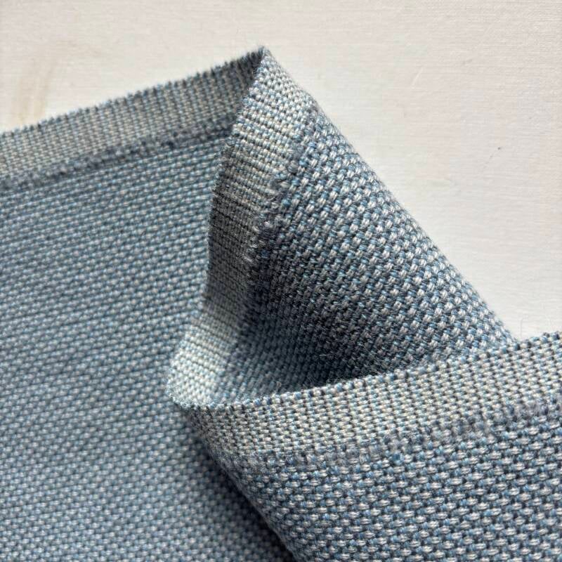 prijs per meter, 1,4m breed, 92% wol, 8% polyamide, blauw tinten, 8 meter voorraad