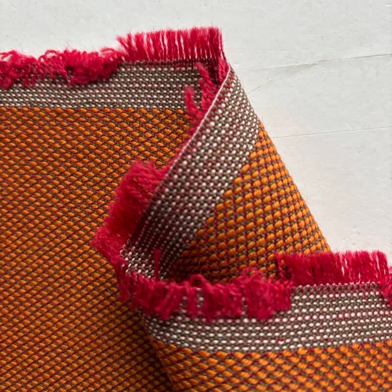 0,6m lang, 1,4m breed, 90% wol, 10% nylon, oranje