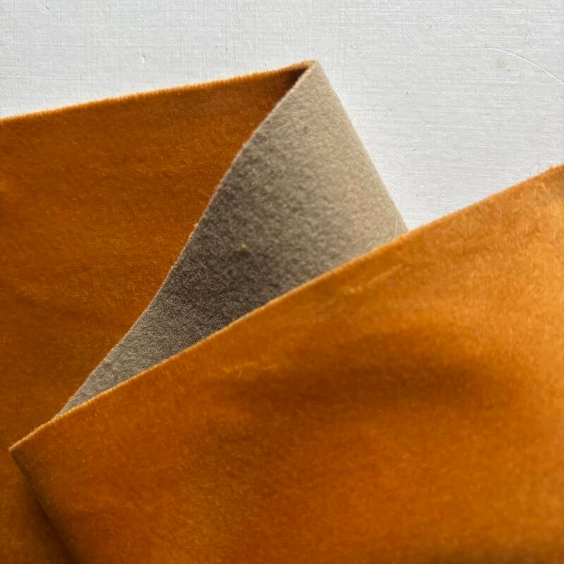 2,4m lang, 1.4m breed, 100% polyester velours, oranjegoud