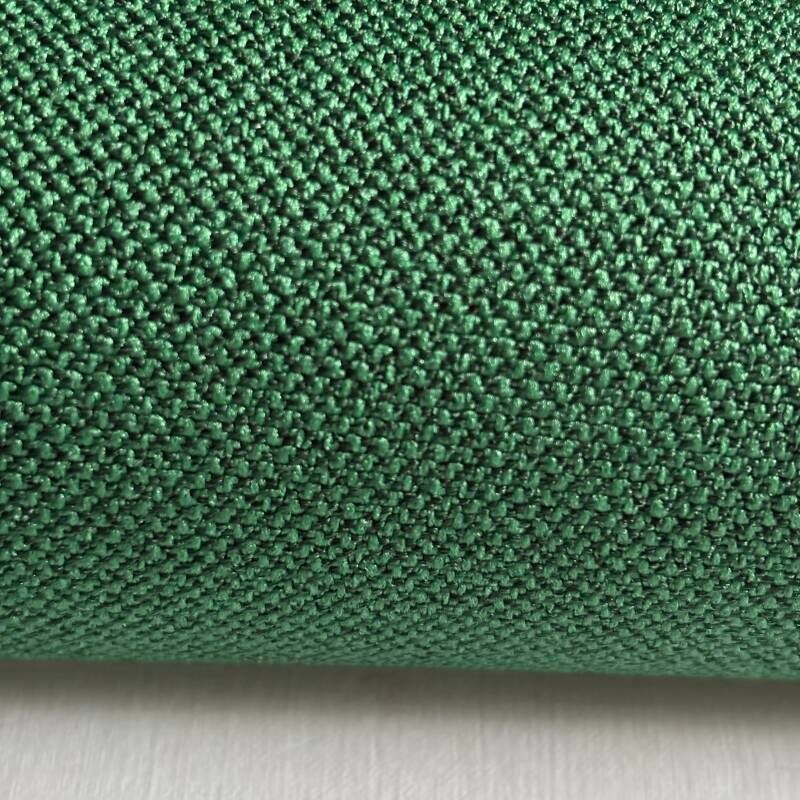 4,2m lang, 1,4m breed met stuk er aan van 0,77m breed en 1,5m lang, 100% polyester, dunne soepele meubelstof, groen