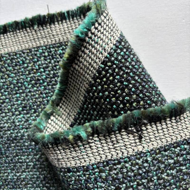 3,5 m lang, 1,4m breed, 70% polyacryl, 20% PES, 10% katoen, grof geweven soepele meubelstof
