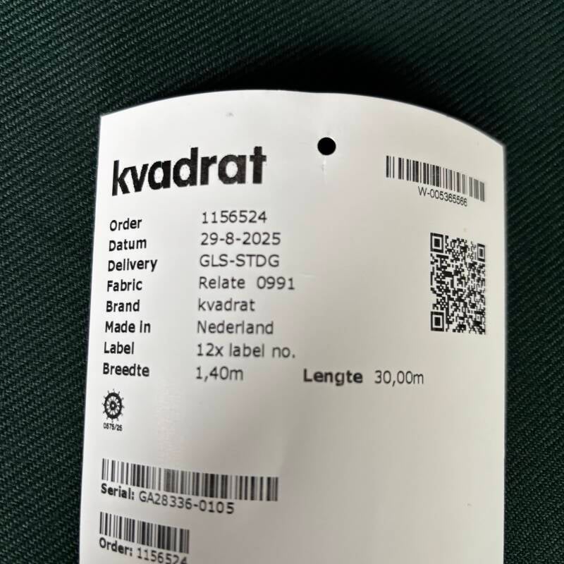 1,33m lang, 1,4m breed, 100% trevira CS, donkergroen