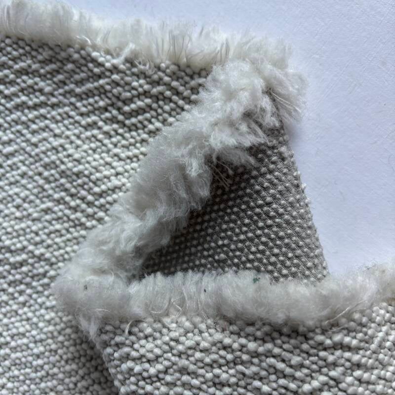 0,6m lang. 1,4 m breed met stuk er aan van 1,15m breed en 0,7m lang, 36% scheerwol, 35% acryl, 22% polyester, 7% katoen