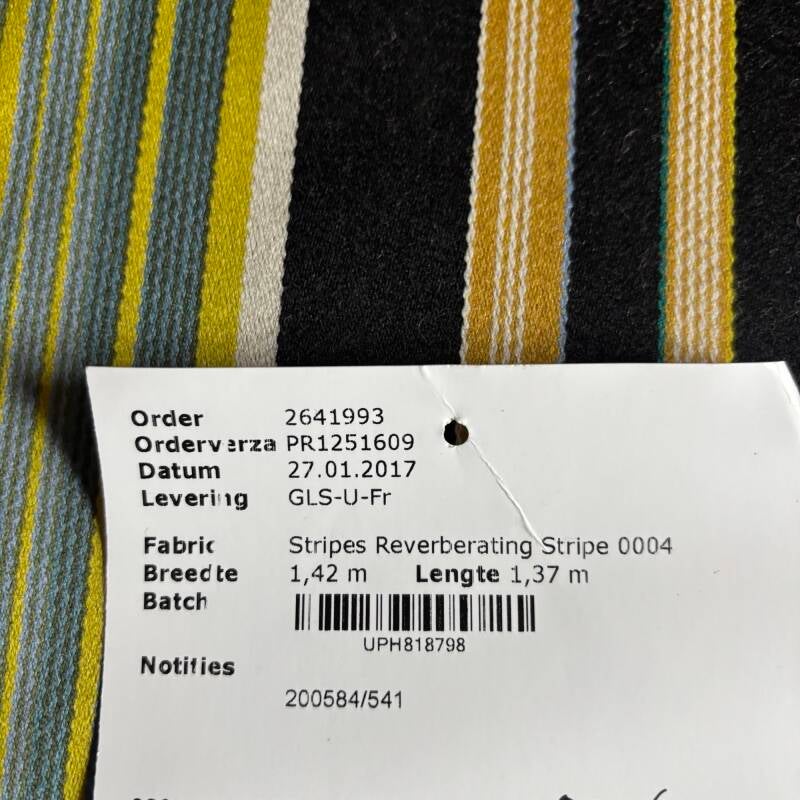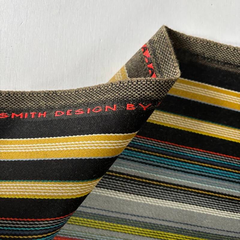 0,81m lang, 1,4m breed met suk er aan van 0,39m breed en 0,9m lang en coupon van 0,5m breed en 0,6m lang, 92% wol, 8% nylon, ontwerp Paul Smith